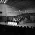 Proiezione di immagini di Duke Ellington durante la performance tenuta al Conservatorio di Milano insieme all'Orchestra della Scala. 21 febbraio 1963