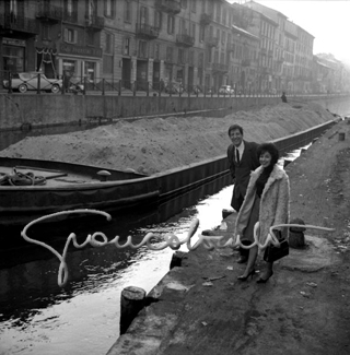 Giorgio Gaber e Patricia Carli sul Naviglio, Milano, 1964